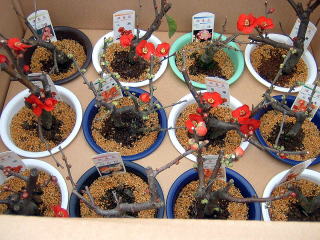 ぼけは、挿し木、接木の苗作り、鉢物などを頑張っています。