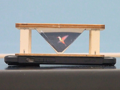 分野 光の反射 内容 いわゆる本当のホログラムではなく、疑似ホログラムのひとつです。ペッパーズ・ゴースト(Pepper's ghost)と呼ばれる視覚トリックを応用して、3Dホログラムのように見せる技術です。 透明または半透明の樹脂板に映像を反射させて、板の向こう側にある景色と、反射された映像とが同時に見えることで、本物の物体がそこに存在しているような錯覚をさせるものです。 図1のように、下にはスマートフォンが置いてあり、その上にピラミッドをひっくり返したように、ハーフミラーを配置します。真横から見ると、スマホの映像がハーフミラーに映って、あたかも空中に存在しているように見えるものです。 図2のようになっています。 図3のような専用の映像がYoutubeに多数投稿されていて、四方のどちらからでも見えるようになっています。 図1の写真では、立体的に見えませんが、肉眼で見ると、それなりに立体的に、空中に浮かんでいるように見えます。 図4は、拡大したものです。 図5は、スマホを上に置いたものです。Youtubeの映像が、中央が下の画像で作成されたものはスマホを装置の下に置き、映像の中央が上の画像で作成されたものは、スマホを上に置くことになります。 薄い塩ビ板やアクリル板、プラ板等を使って装置を自作する記事が、多数Webに載っています。 この度の写真は、キットを組み立てたものです。 購入先 ネット通販 約1,000円程度 |