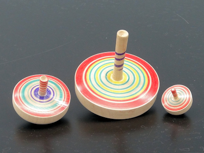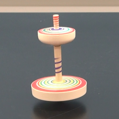 下のコマ大が回っているので、コマ中の回転は自然に速くなり、すぐに図3のように安定して重なって回ります。