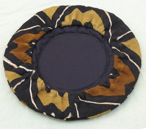 | 西アフリカの布ボゴラン(手織り布泥染め)を使ったマリ製 ジャンベキャップ(ヘッドカバー)。クッション入りで打面を保護します。厚手の裏地が付いたしっかりとした作りです。外径39cmくらいまでのジャンベに適応します。