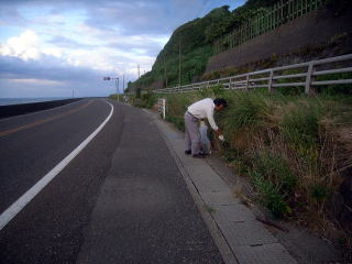 国道8号線が近くて、車の走行に十分注意して作業をします