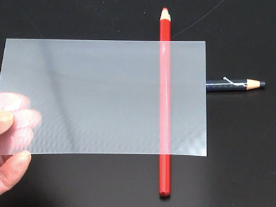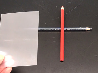 分野 光の屈折 透明マント(光学迷彩)として遊ぶことができます。 内容 レンチキュラーレンズは、細かいかまぼこ状の半円状レンズが並んだ特殊な樹脂製のシートです。昔から、見る角度によって絵柄が変化する画像に用いられていたものです。 図1は、はがきサイズのレンチキュラーレンズで、縦方向の筋があります。これは、細長い かまぼこ状のレンズが、横方向にびっしり並んでいるものです。 図の右側が、50LPI(Lines Per Inch:1インチあたりのライン数)、左側が 100LPIのものです。他に 200LPIのものも購入しました。 レンチキュラーレンズは、かまぼこ状の形状から、ラインと直交する方向にのみ光を拡散させます。このことから、絵柄を変化させる利用法とは別の現象として、透明マントのような効果を見ることができます。 図2は、赤、青の色鉛筆を十字型に置いたものです。青色が下になっています。用いたレンチキュラーレンズは、50LPIのものです。 図3のように、色鉛筆から少し離してレンチキュラーレンズを配置すると、赤鉛筆が消えて、青鉛筆のみが見えます。 2本の色鉛筆がクロスしたところも、青鉛筆があるように見えるところが興味深いです。 これは、レンチキュラーレンズにより、図の横方向に光が拡散されているために、このように見えるのです。 図4は、レンチキュラーレンズの向きを変えて、青鉛筆を消したところです。 この現象の実験をするには、50LPI程度のレンチキュラーレンズがいいようです。100LPI、200LPIと、同様に試しましたが、かまぼこ状のレンズが小さくなるに従って光の拡散が少なくなるので、消したいものがぼんやり見えるようになってしまいます。 購入先 ビーム電子工業株式会社 Yahoo!店 3Dレンチキュラーシートはがきサイズ 約1,000円程度でした 50〜200LPIがあります。 他にも、A4サイズや、50cm×100cmのサイズのものなどがあります。 |