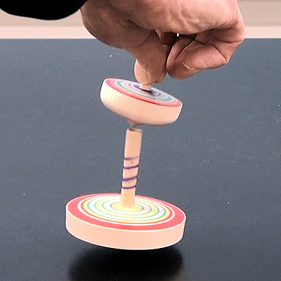 下のコマ大が回っているので、コマ中の回転は自然に速くなり、すぐに図3のように安定して重なって回ります。